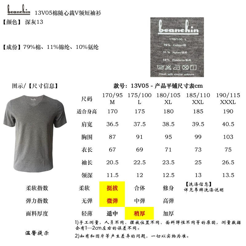 产品描述: 13V05 棉随心裁V领短袖衫 日本进口专利面料,360度裁剪不脱丝 -产品从设计上利用随心裁面料的特点 -独特的不脱丝cotton/棉随心裁剪面料 -在领口、袖口、底摆、裤口等位置使用切边工艺 -最简洁的款式,表达出轻松,自由自在的产品风格 -使产品上身后非常轻松舒适,完全没有束缚感