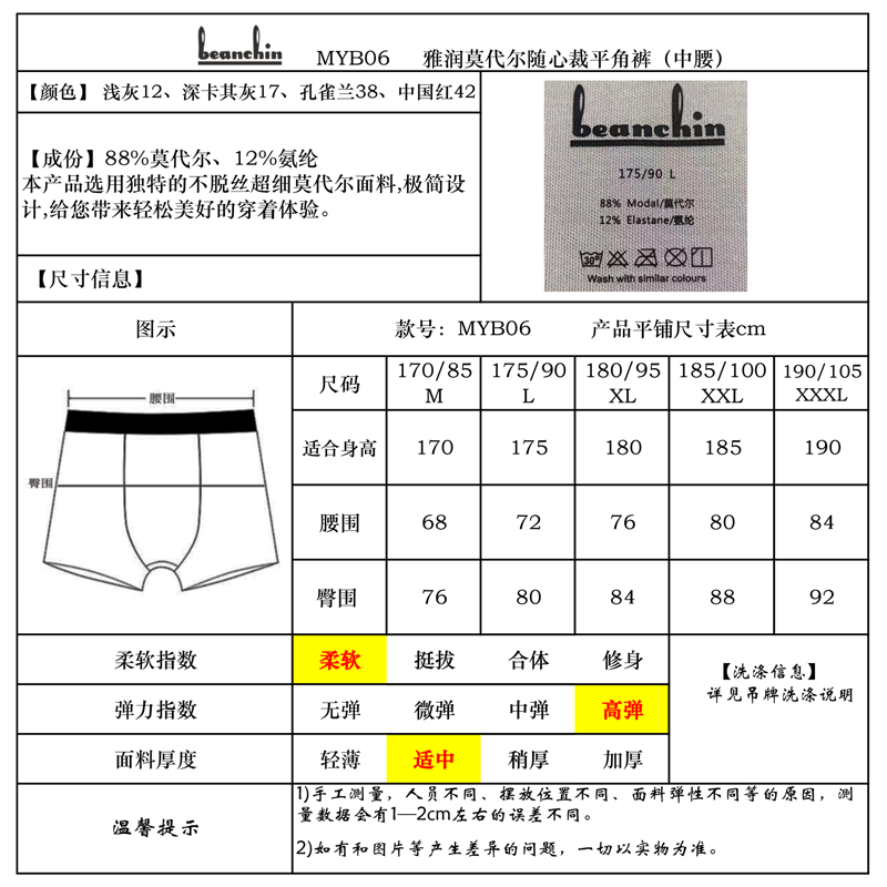• 商品名称:雅润莫代尔随心裁平角裤MYB06