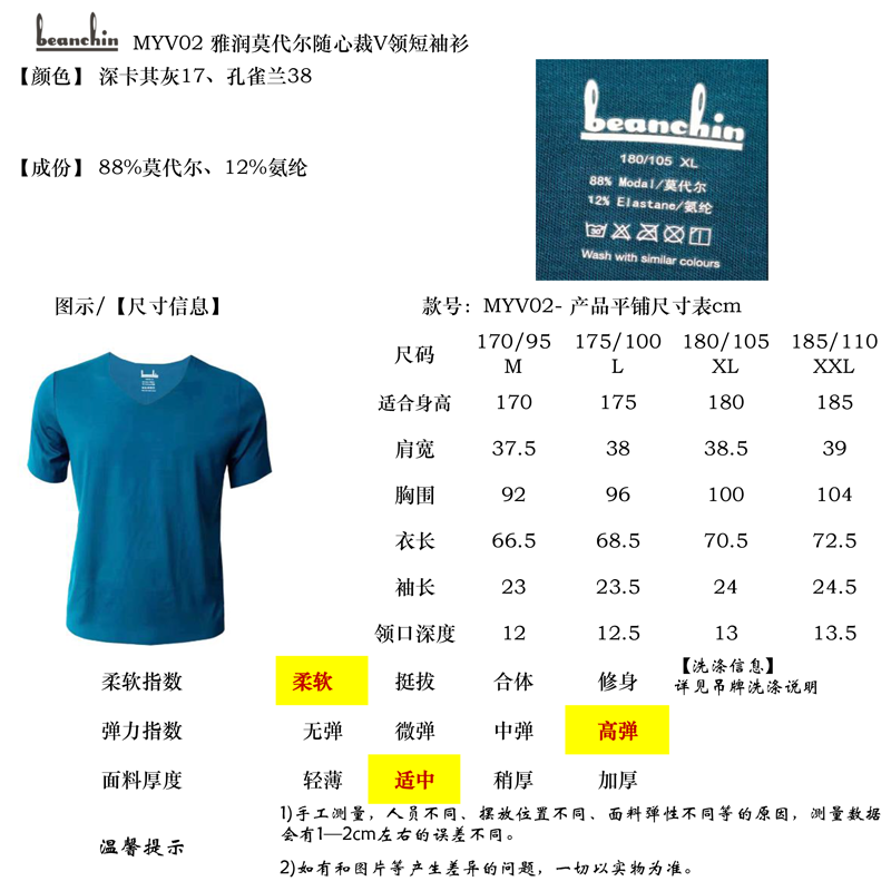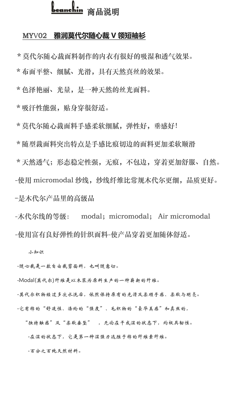 • 商品名称:雅润莫代尔随心裁V领短袖衫MYV02