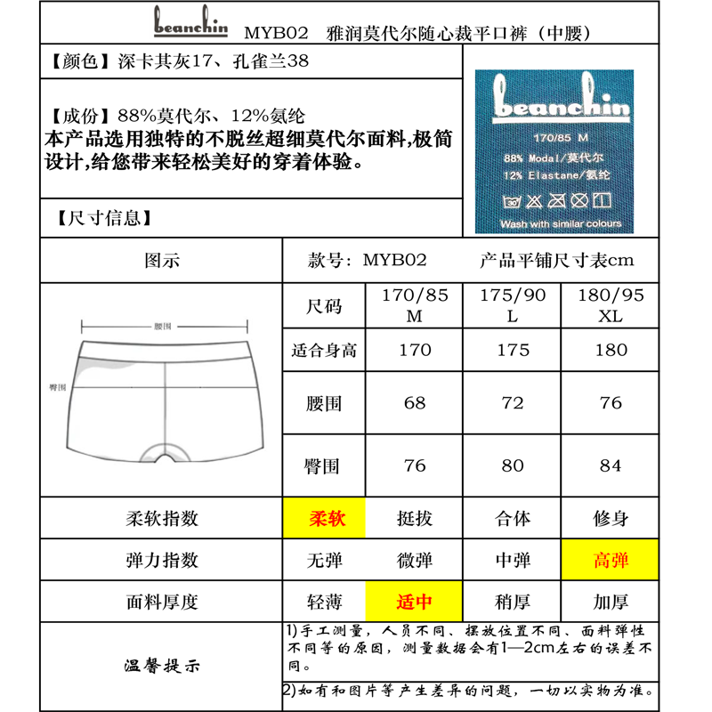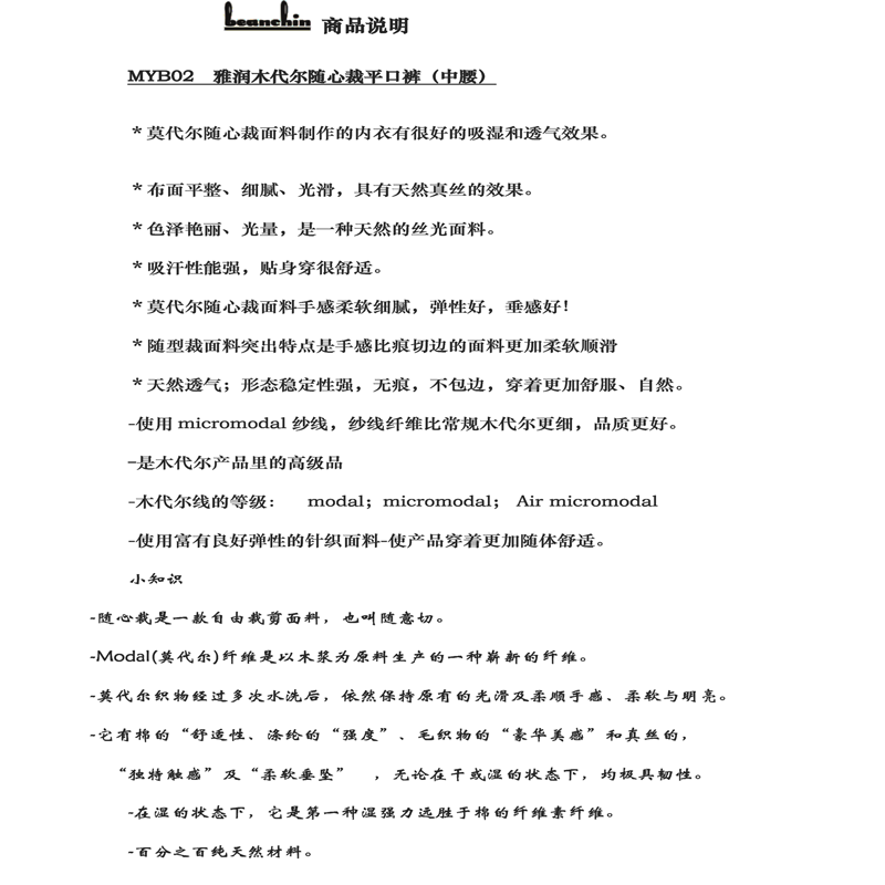 • 商品名称:雅润莫代尔随心裁平口裤MYB02
