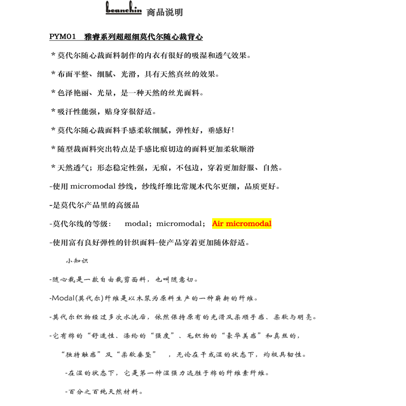 • 商品名称:雅睿系列超超细莫代尔随心裁背心PYM01