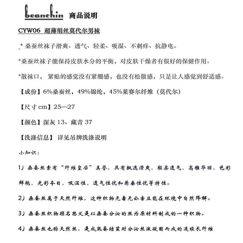 • 商品名称:超薄绢丝莫代尔男袜CYW06