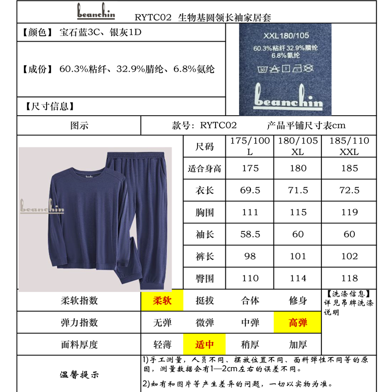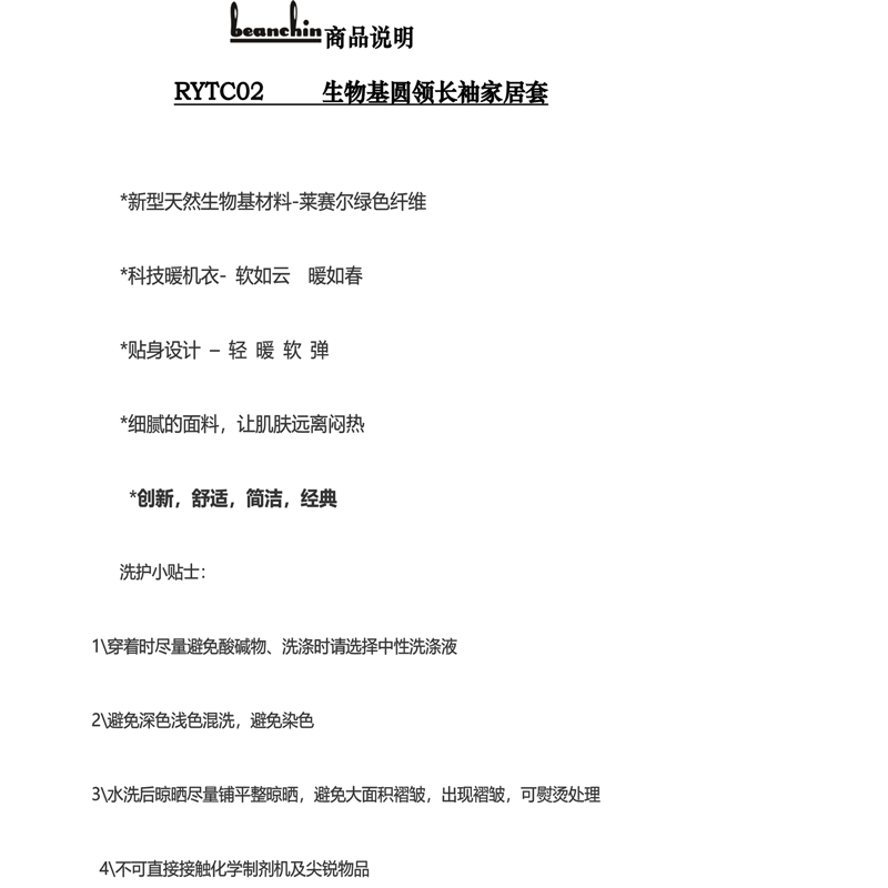 • 商品名称:生物基圆领长袖家居套RYTC02