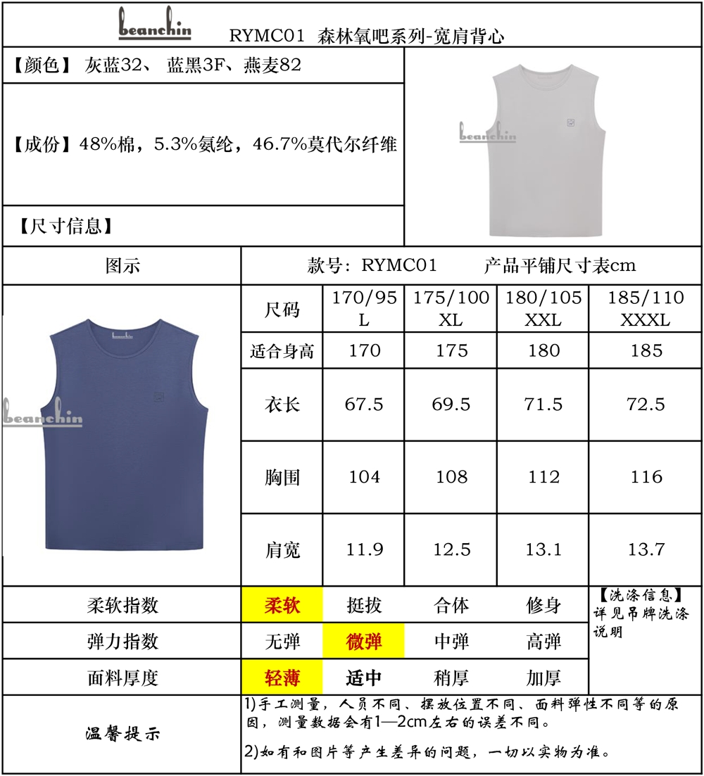 • 商品名称:森林氧吧系列-宽肩背心RYMC01