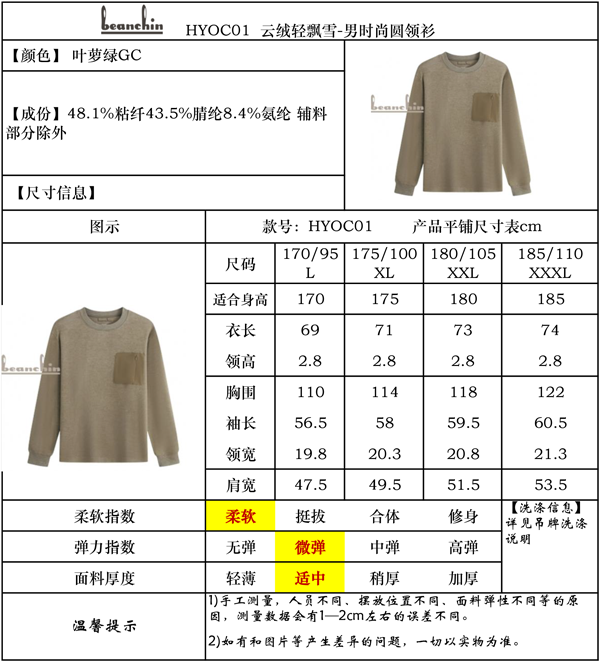 • 商品名称:云绒轻飘雪-男时尚圆领衫HYOC01