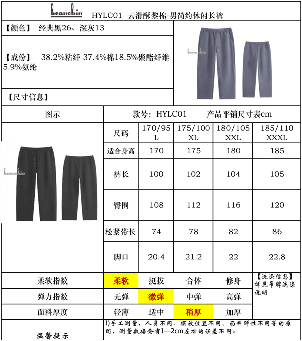 • 商品名称:云滑酥黎棉-男简约休闲长裤HYLC01
