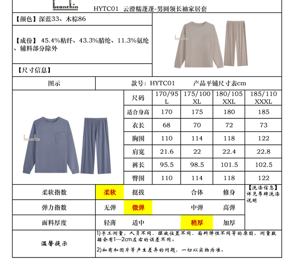 • 商品名称:云滑糯蓬蓬-男圆领长袖家居套HYTC01